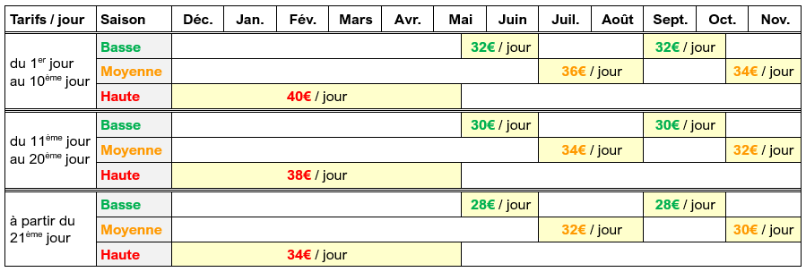 Haute saison (HT) :
